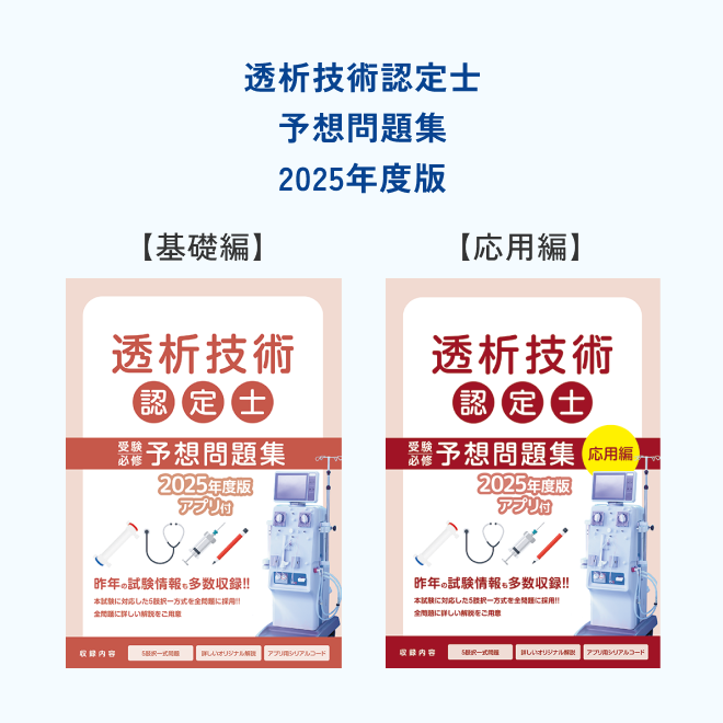 基礎編では、透析技術認定士の学習が初めての方でも解きやすい基本的な問題や試験によく出る問題を厳選して収録しています。